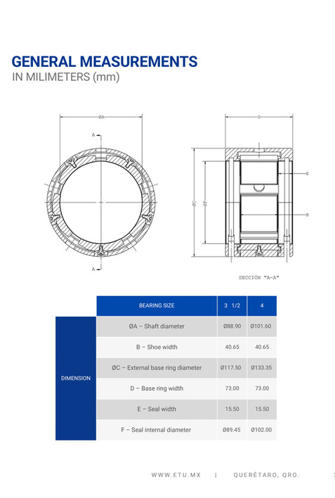 The shoes have a babbitt coating on the working face in order to prevent direct friction (metal to metal) with the shaft. Thanks to the key seat, the shoe is free to tilt in any direction.